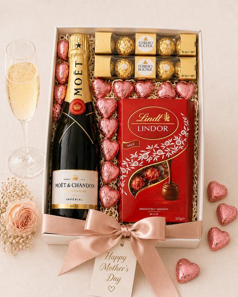 A luxurious hamper containing Moet Chandon, the finest chocolates and beautifully presented making it the perfect Mother's Day gift.